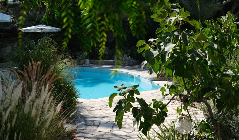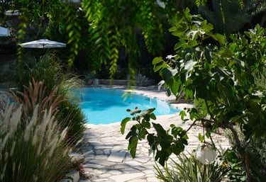 Outside, a lush garden and patio invite you to slow down. Whether it’s a morning swim in the pool, a lazy afternoon in the shade, or dinner under the stars, the spaces are made for relaxation — and for sharing moments with family or friends.